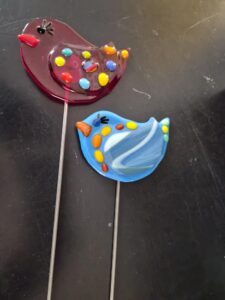 bird garden stake using hand cut glass pieces. These will be fused in a kiln and