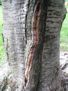 When temperatures drop suddenly or trees don’t have time to adjust to the cold, the sap or water inside starts to freeze. The water expands as it freezes, which puts pressure on the bark and wood. This can cause a crack or a split, which often comes with a loud bang, almost like a gunshot. They’re called frost cracks, and in most cases, the tree can heal itself and survive. You may have seen the scars running down the trunks of trees that have healed over, such as this cherry tree
