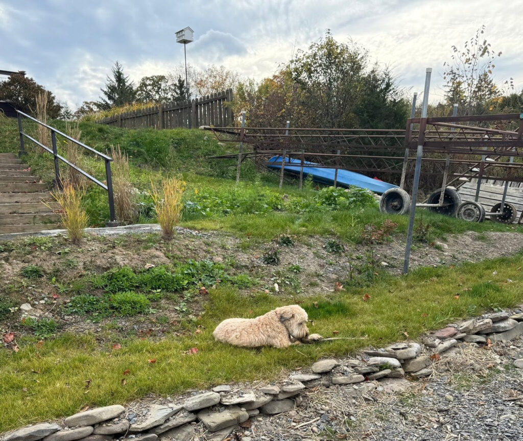 Mid-August was critical to take advantage of shorter days which are typically cooler with rain (but not this year.) The grassy meadow on top, the shrubby hill and lower meadows were watered lightly and daily with sprinklers and timers.