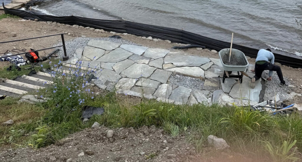 We submitted a sketch showing measurements to the town for approval along with a plan for stormwater management. Requesting a permit from the town is important as each municipality may have different requirements. As of 2026, new classifications consider many waterfront properties to be a protected wetland, and the DEC may require permits.