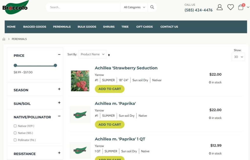 Select your category and on the left side navigation you can select bloom time, sun/soil conditions, Native/pollinators, Resistance to deer or black walnut!